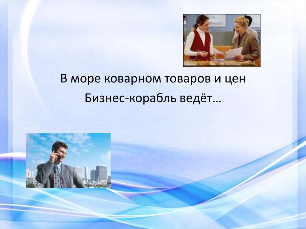 В море коварном товаров и ценБизнес-корабль ведёт…