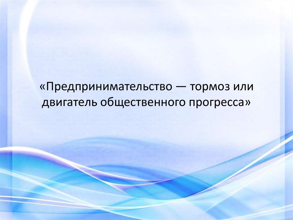 «Предпринимательство — тормоз илидвигатель общественного прогресса»