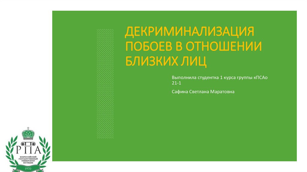 ДЕКРИМИНАЛИЗАЦИЯПОБОЕВ В ОТНОШЕНИИ