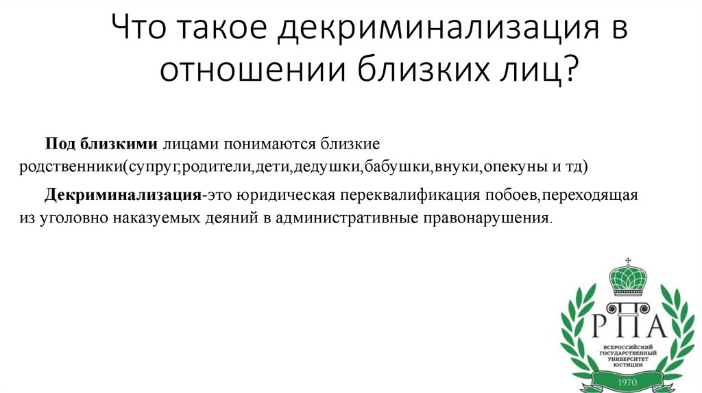 Что такое декриминализация вотношении близких лиц?