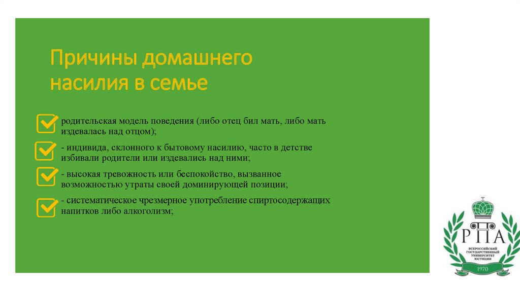 Причины домашнегонасилия в семье