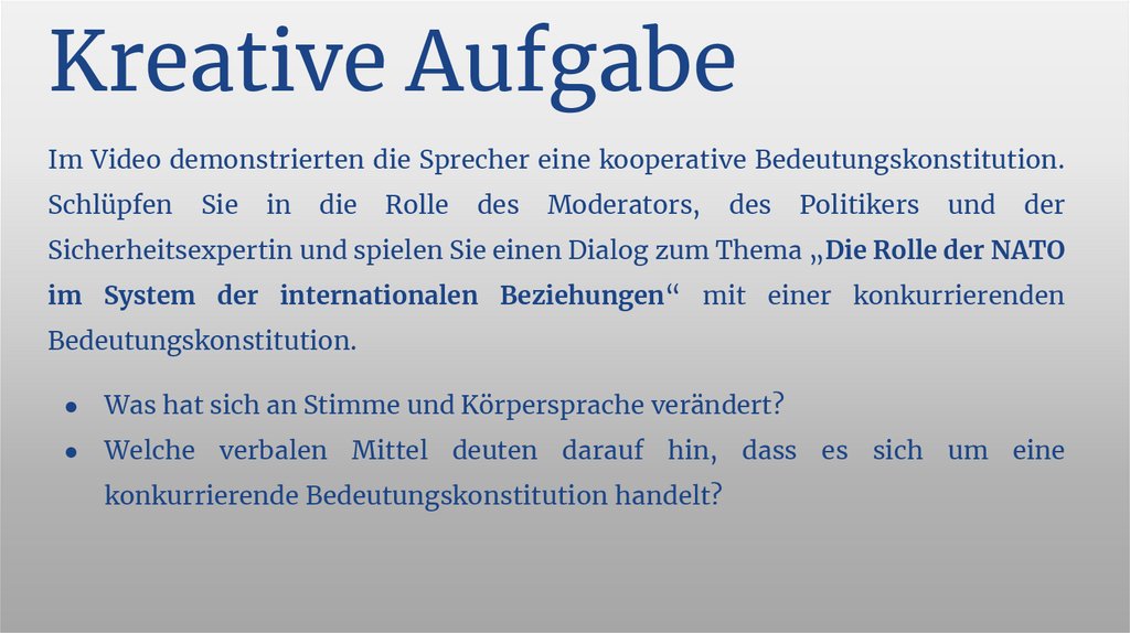Kreative AufgabeIm Video demonstrierten die Sprecher eine kooperative Bedeutungskonstitution.