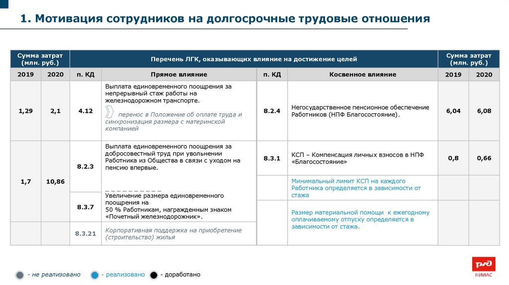 1. Мотивация сотрудников на долгосрочные трудовые отношенияСумма затрат