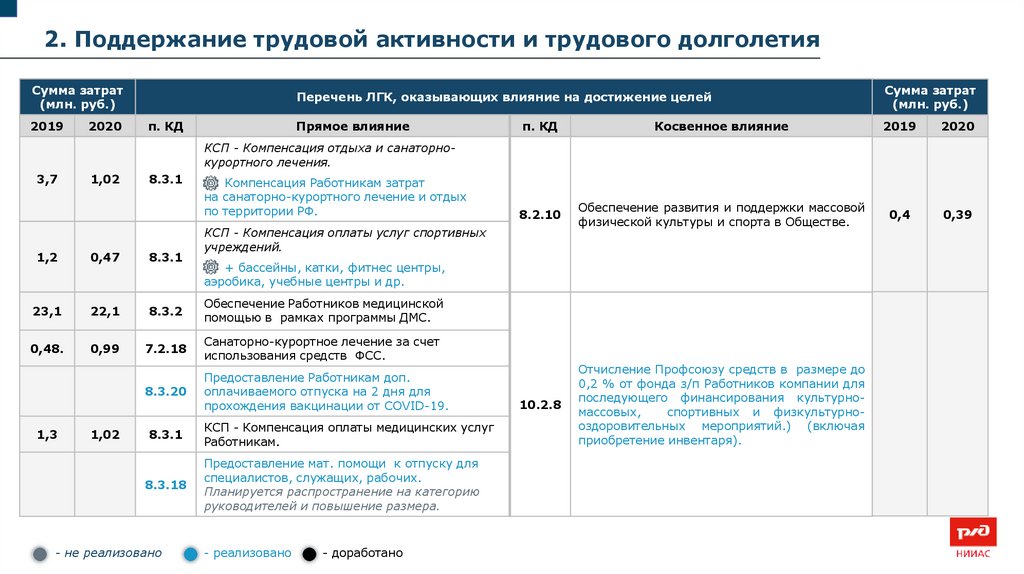 2. Поддержание трудовой активности и трудового долголетияСумма затрат