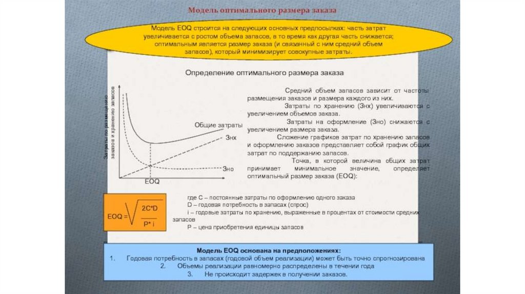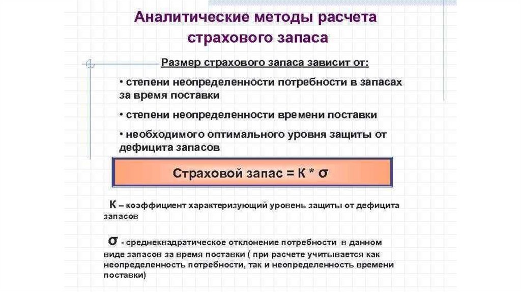 создание и хранение запасов, уменьшения потерь рабочего времени и