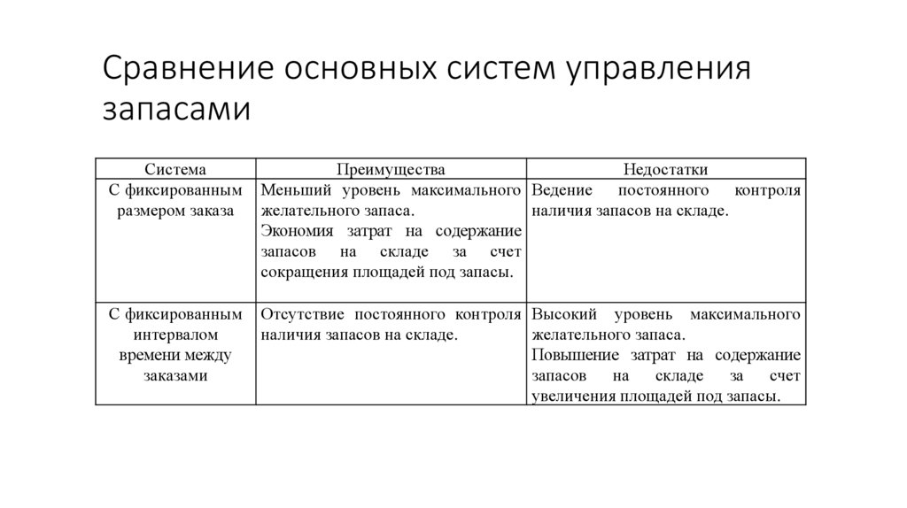 Сравнение основных систем управлениязапасами