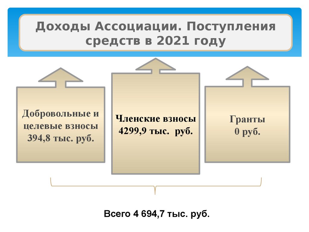 Доходы Ассоциации. Поступлениясредств в 2021 году