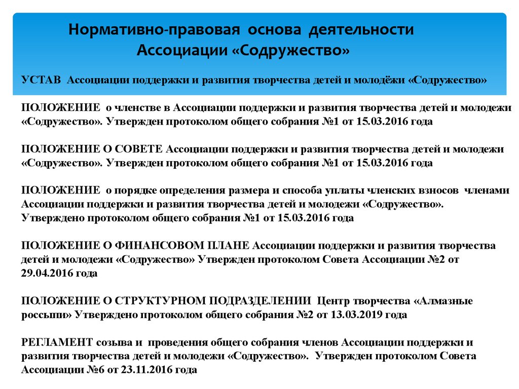 Нормативно-правовая основа деятельностиАссоциации «Содружество»