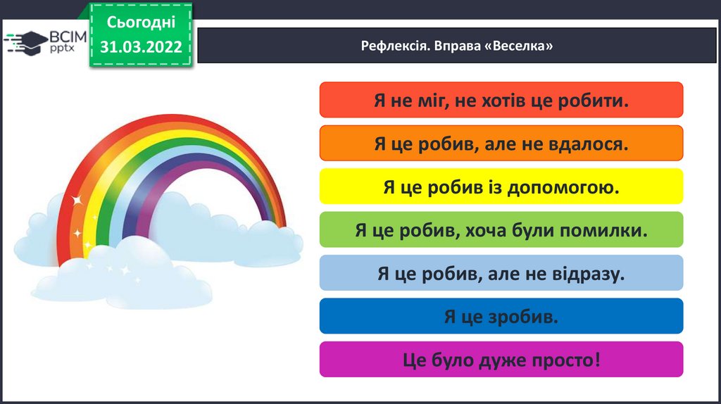 Рефлексія. Вправа «Веселка»