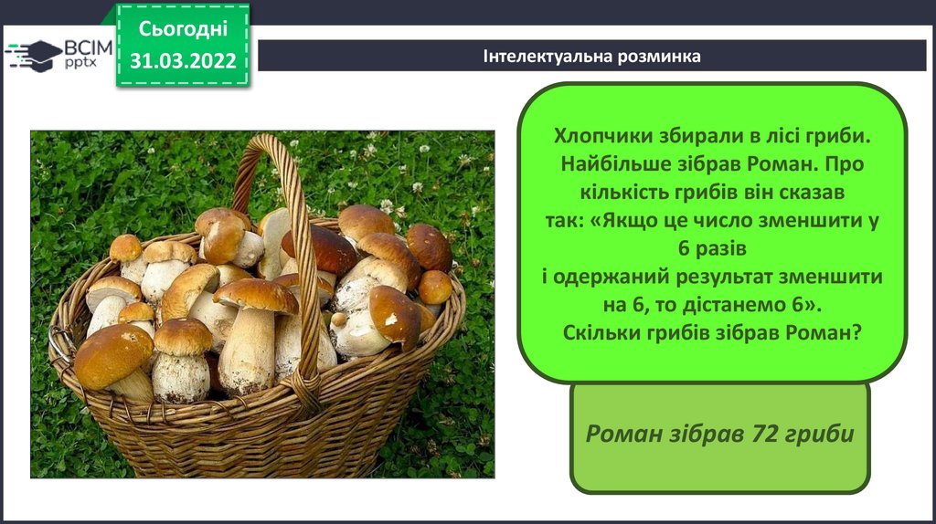 кiлькiсть грибiв вiн сказав