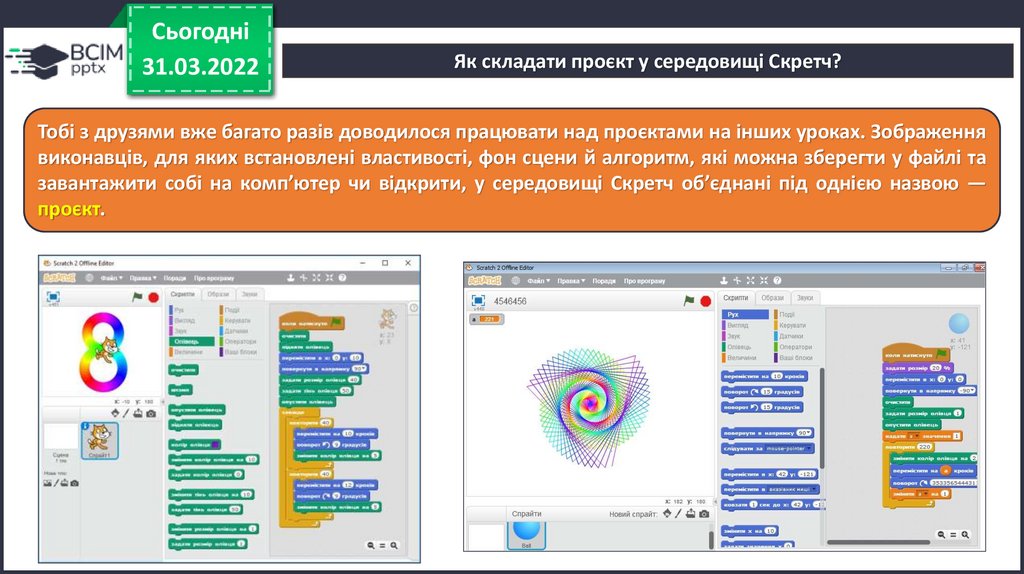 завантажити собі на комп’ютер чи відкрити, у середовищі Скретч об’єднані під однією назвою —