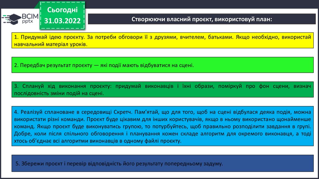 Створюючи власний проєкт, використовуй план: