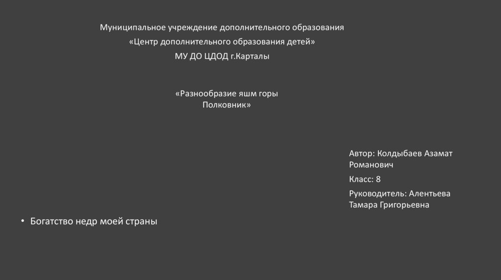 • Выводы: МесторождениеОрской яшмы горы Полковник
