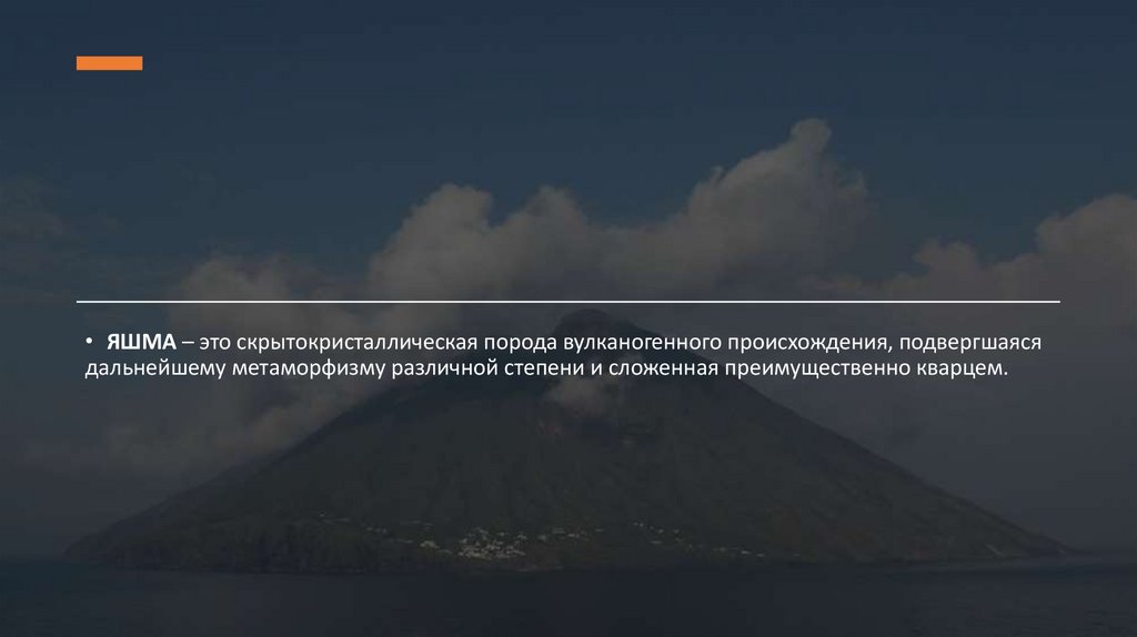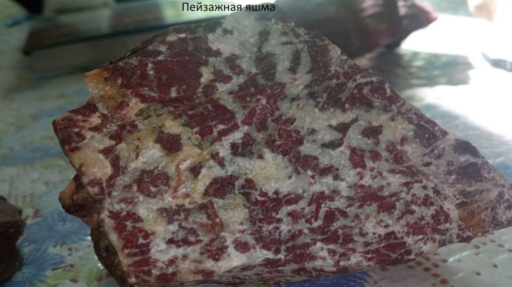 • ЯШМА – это скрытокристаллическая порода вулканогенного происхождения, подвергшаясядальнейшему метаморфизму различной степени и сложенная преимущественно кварцем.