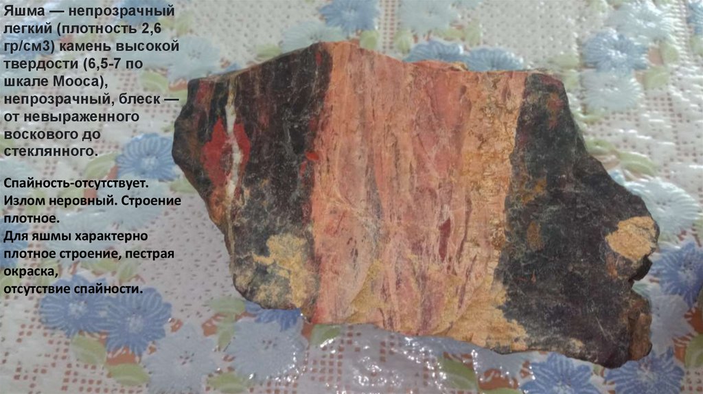 Яшма — непрозрачныйлегкий (плотность 2,6