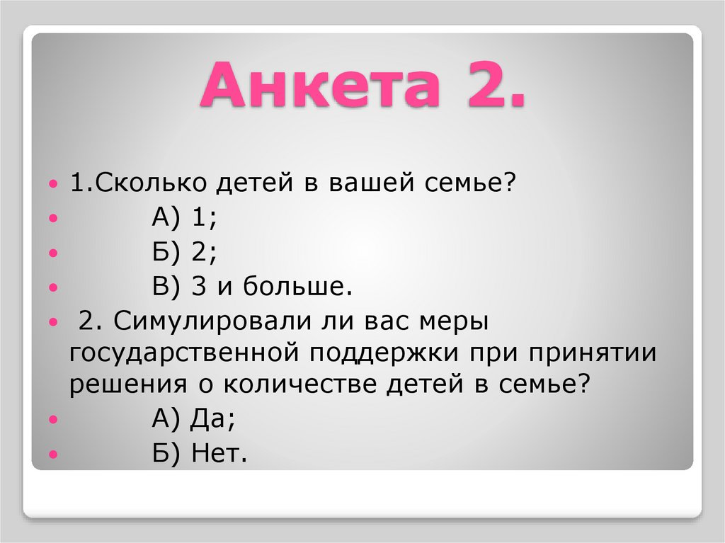 Анкета 2.1.Сколько детей в вашей семье?