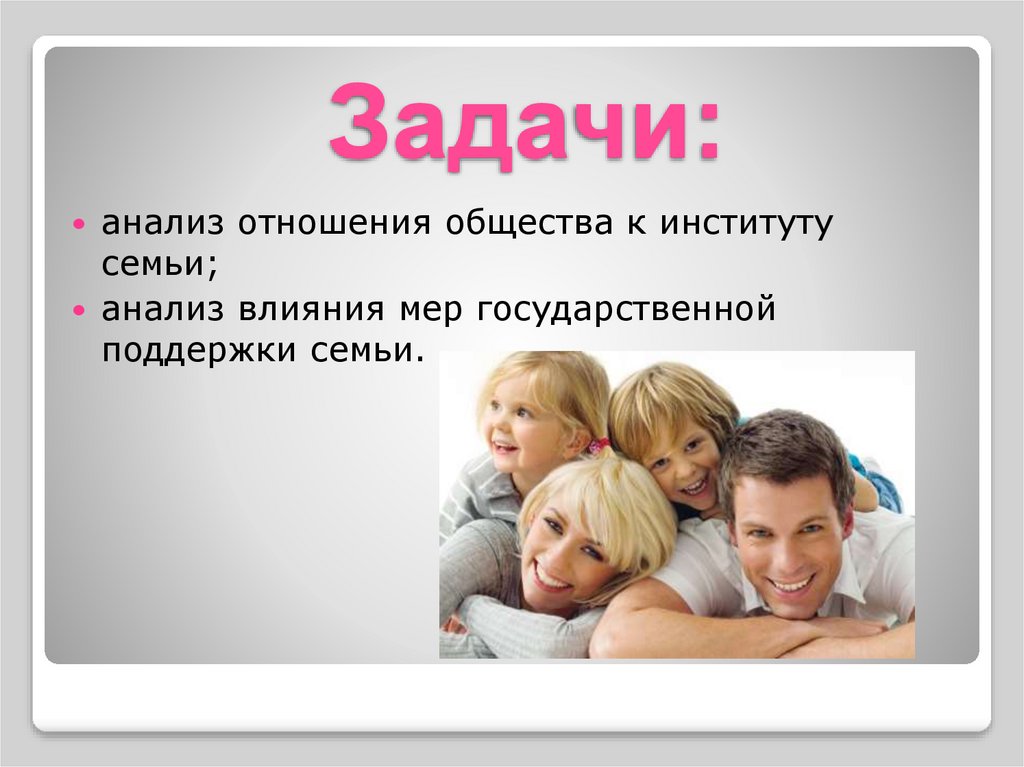 Задачи:изучение и анализ развития института семьи в