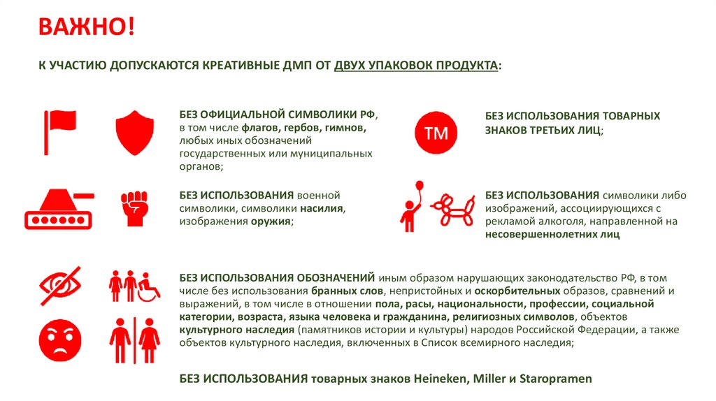 БЕЗ ИСПОЛЬЗОВАНИЯ товарных знаков Heineken, Miller и Staropramen