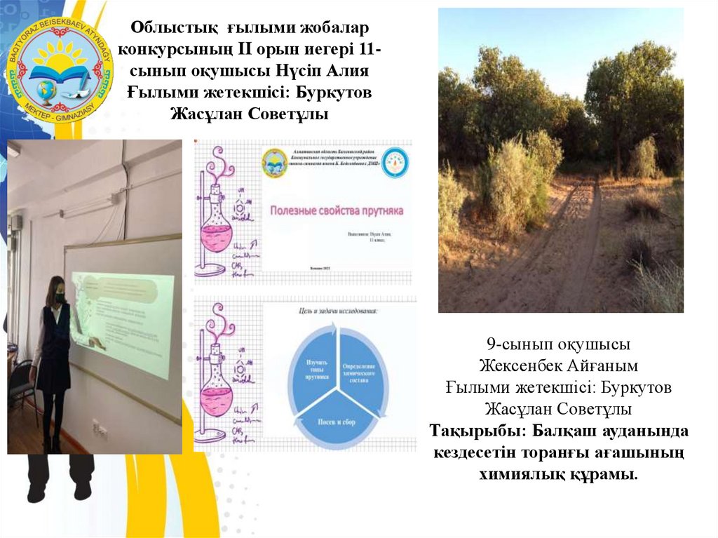 Облыстық ғылыми жобаларконкурсының II орын иегері 11сынып оқушысы Нүсіп Алия