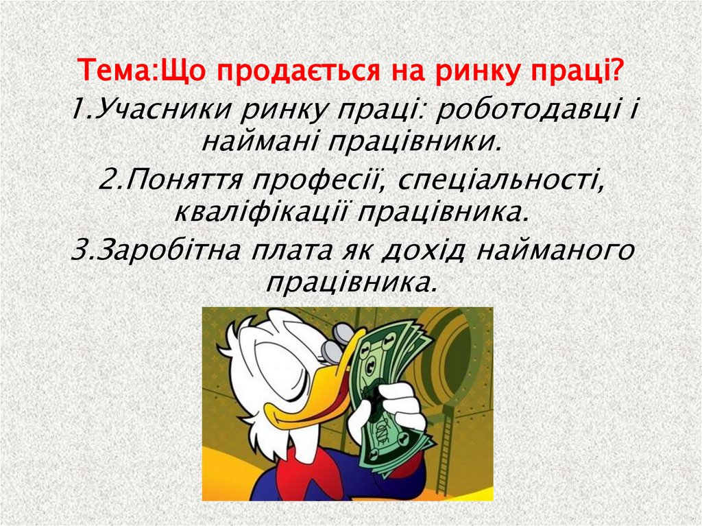Тема:Що продається на ринку праці?1.Учасники ринку праці: роботодавці і