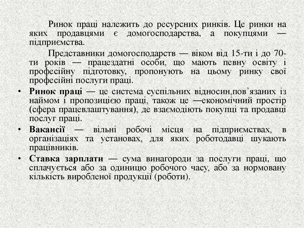 • Ринок праці ― це система суспільних відносин,пов’язаних із
