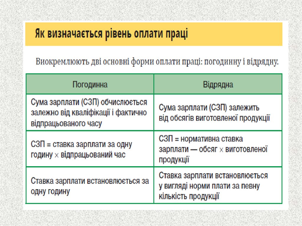 часу, виробітку, обслуговування, посадові обов'язки). Вона