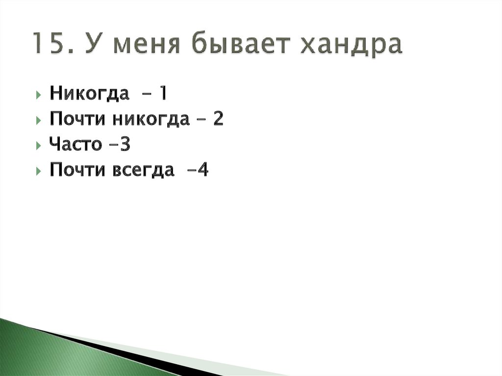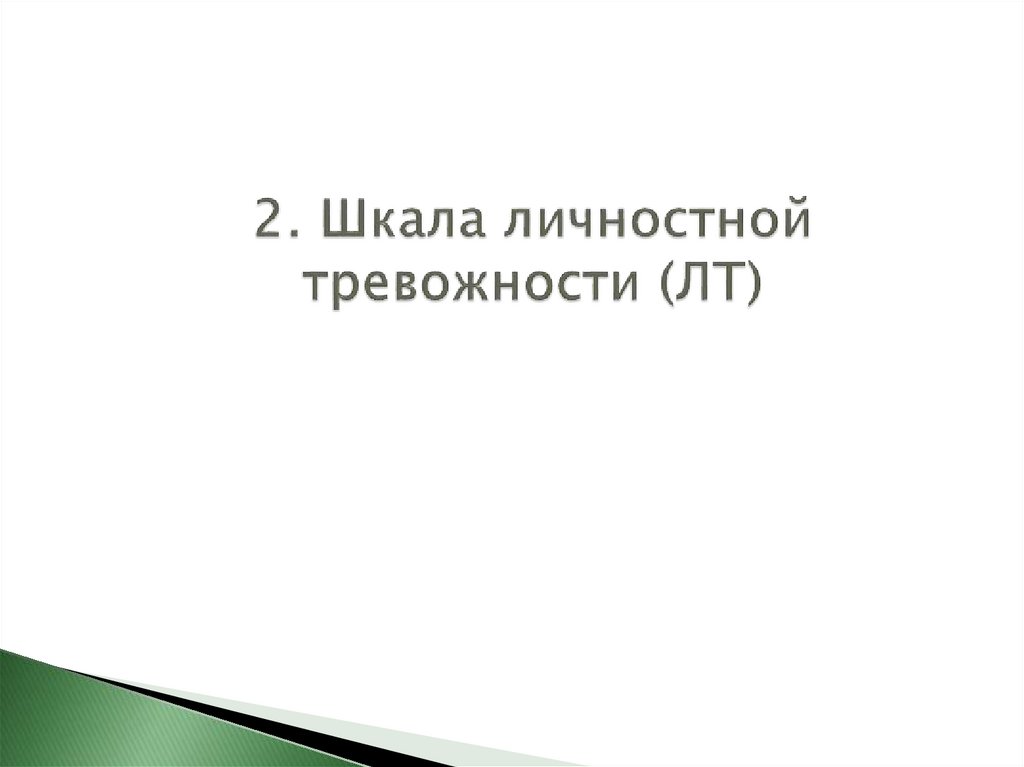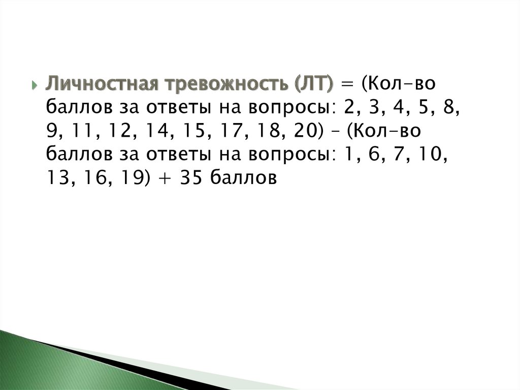 Личностная тревожность (ЛТ) = (Кол-вобаллов за ответы на вопросы: 2, 3, 4, 5, 8,