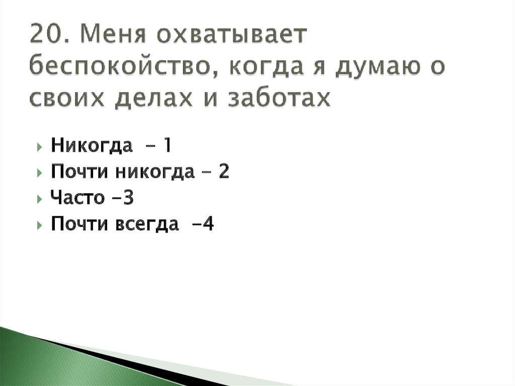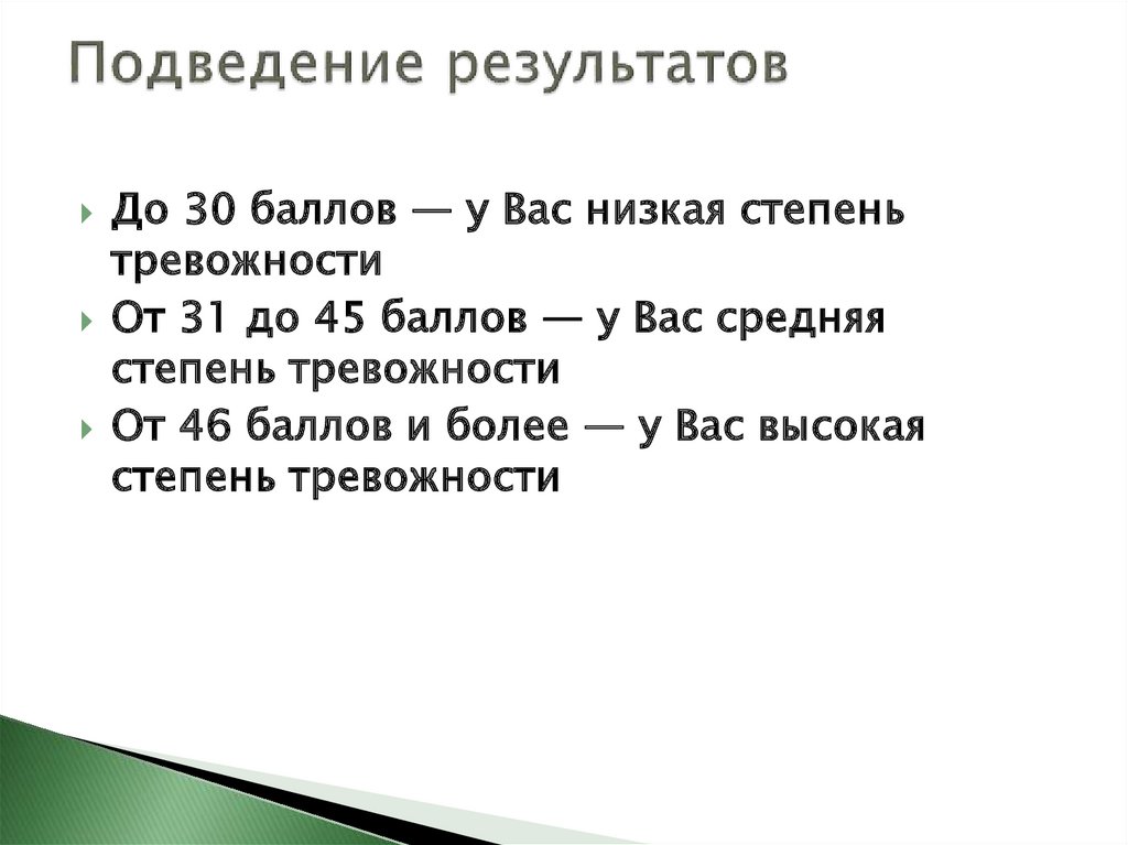 До 30 баллов — у Вас низкая степеньтревожности