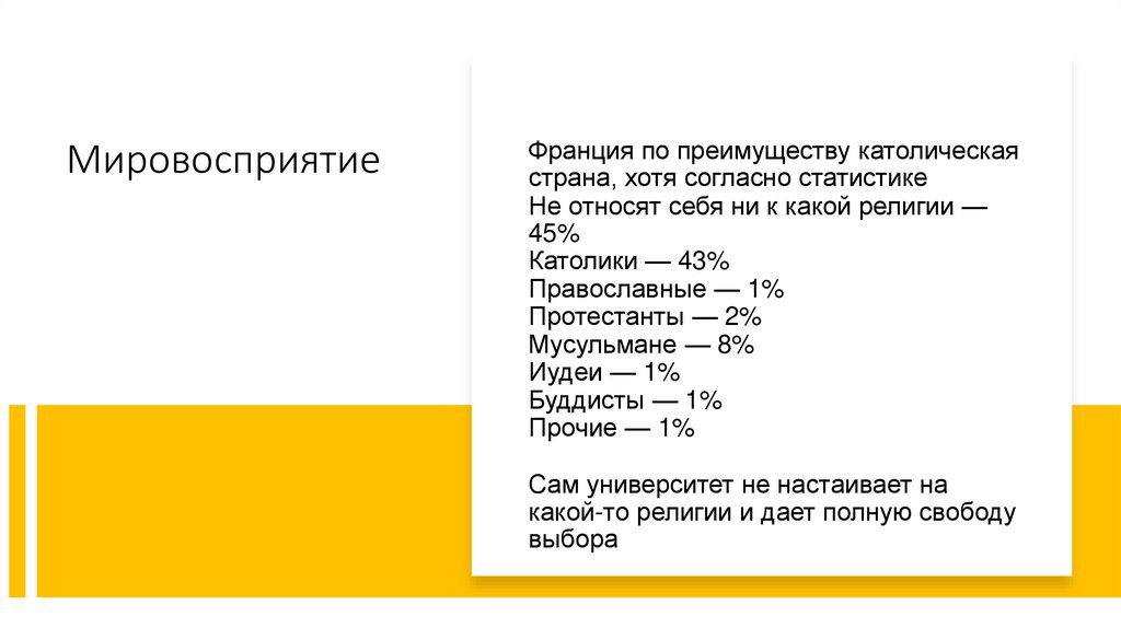 МировосприятиеФранция по преимуществу католическая