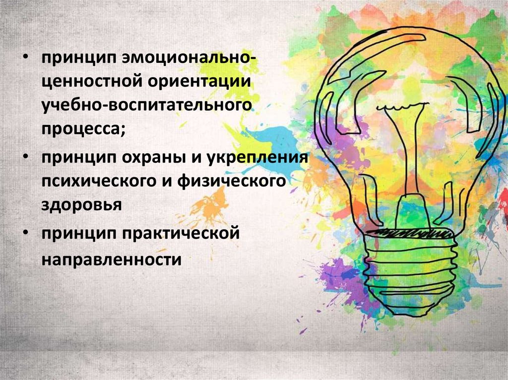 • принцип эмоциональноценностной ориентацииучебно-воспитательного