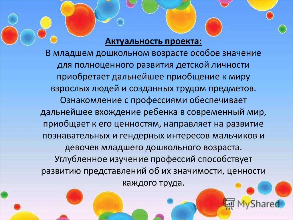 Актуальность проекта:В младшем дошкольном возрасте особое значение