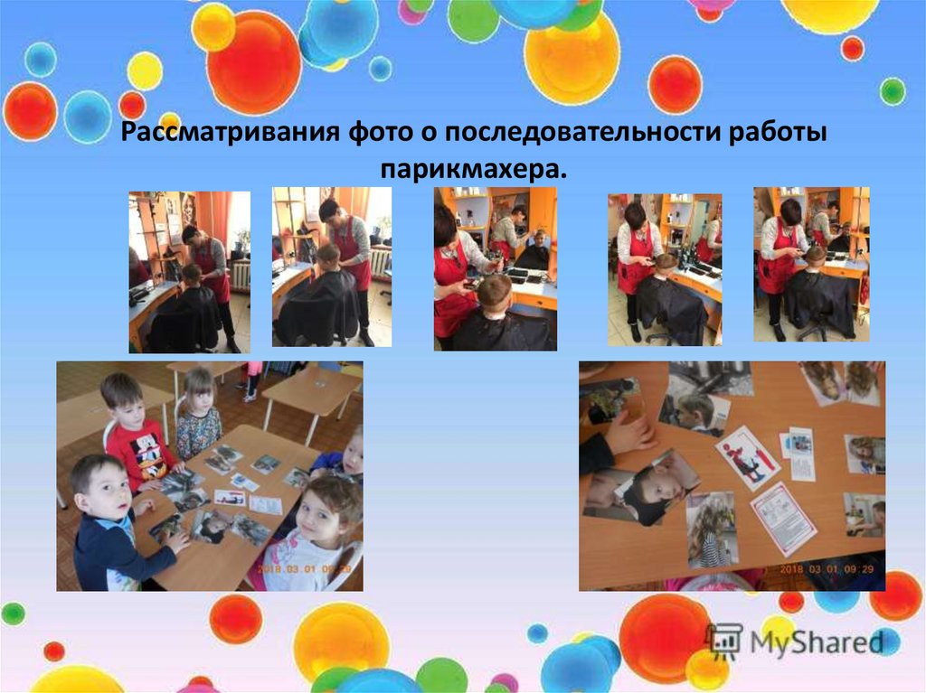 •Рассматривание иллюстраций. Рассказвоспитателя о профессии парикмахера.