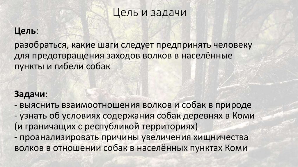 - выяснить взаимоотношения волков и собак в природе