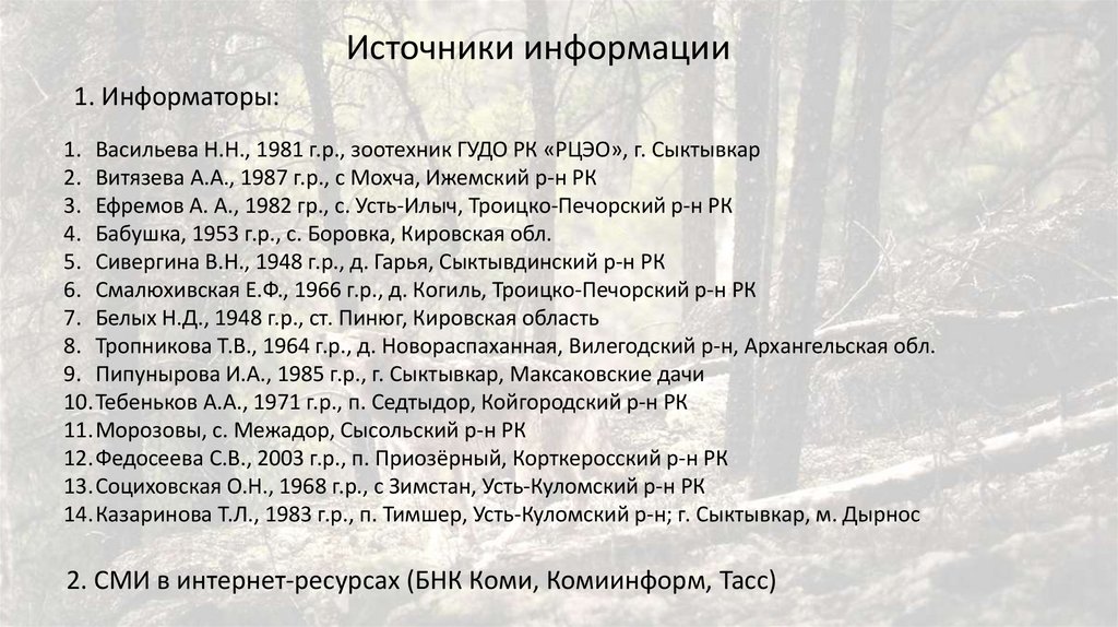 Источники информации1. Информаторы: