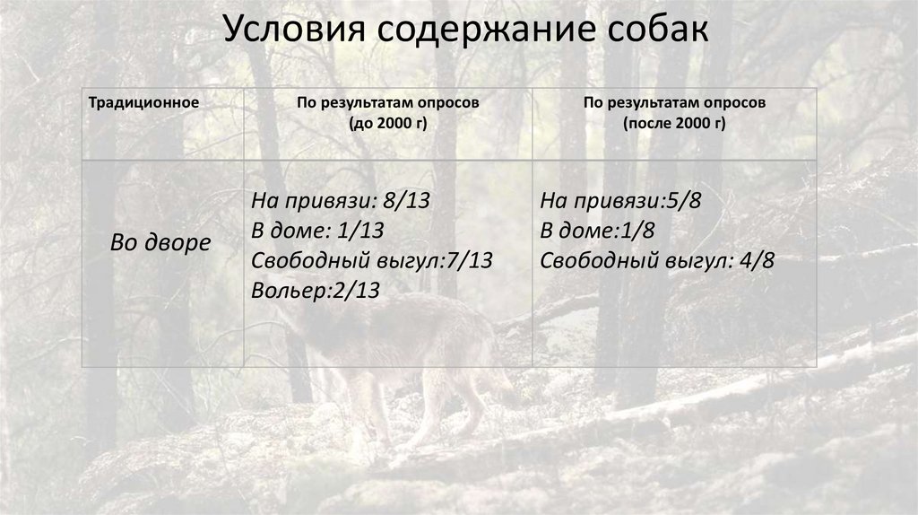 Условия содержание собакТрадиционное