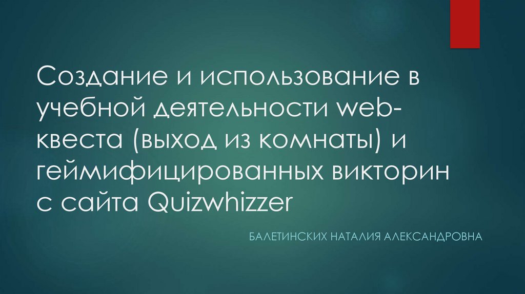 Создание и использование в учебной деятельности webквеста (выход из комнаты) и геймифицированных викторин с сайта Quizwhizzer
