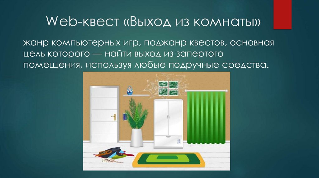 Web-квест «Выход из комнаты»жанр компьютерных игр, поджанр квестов, основная