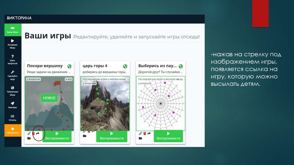 -нажав на стрелку подизображением игры,