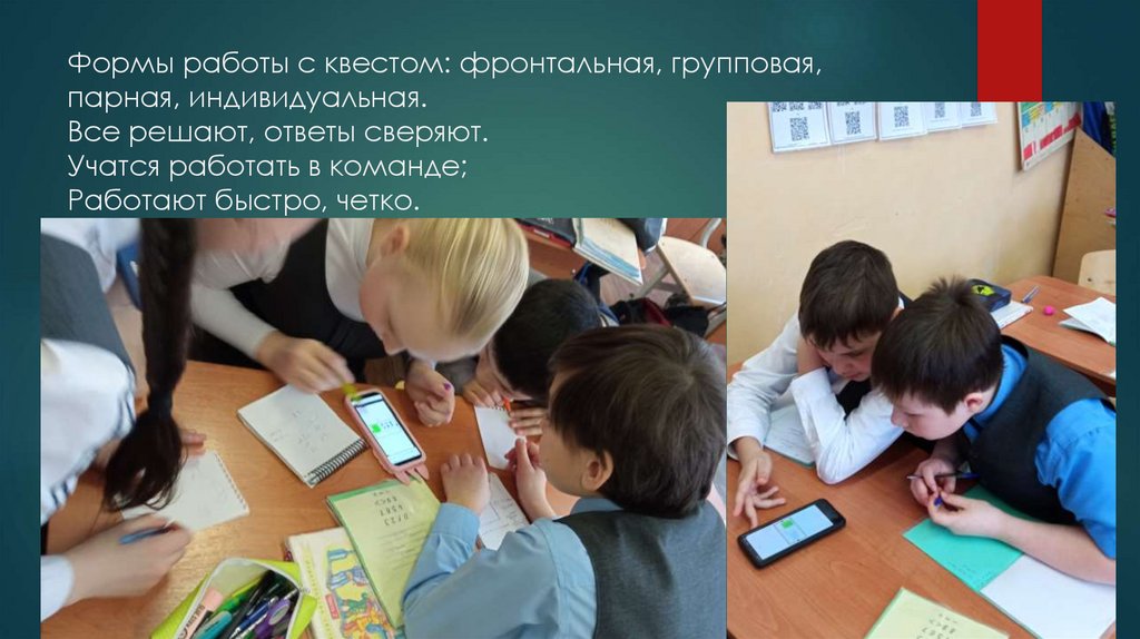 Формы работы с квестом: фронтальная, групповая,парная, индивидуальная.