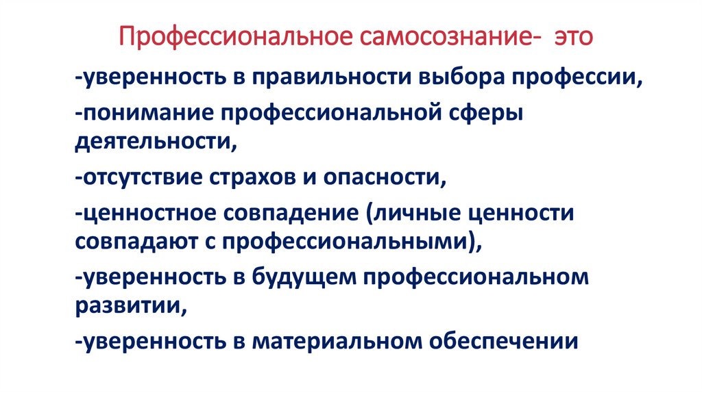 Профессиональное самосознание- это-уверенность в правильности выбора профессии,