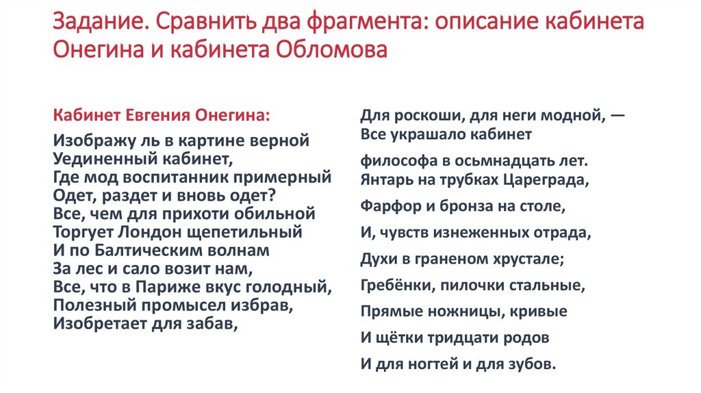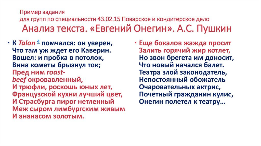 Анализ текста. «Евгений Онегин». А.С. Пушкин