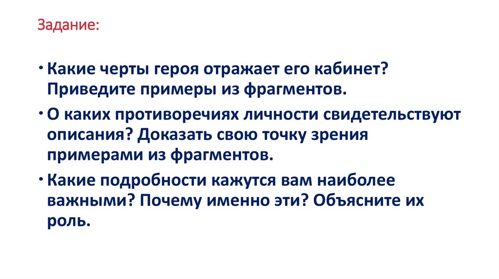Задание:Какие черты героя отражает его кабинет?