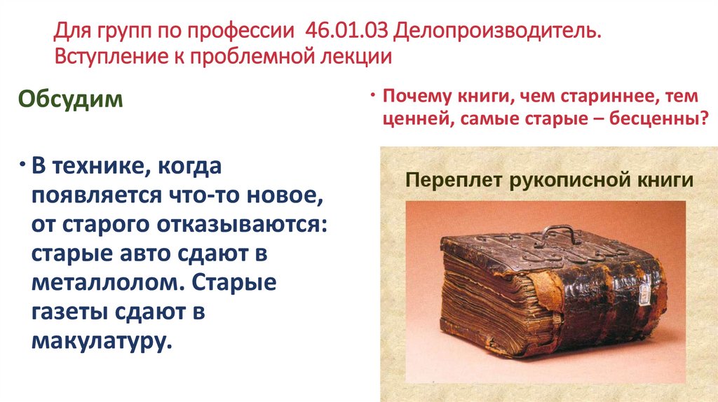 Для групп по профессии 46.01.03 Делопроизводитель.Вступление к проблемной лекции