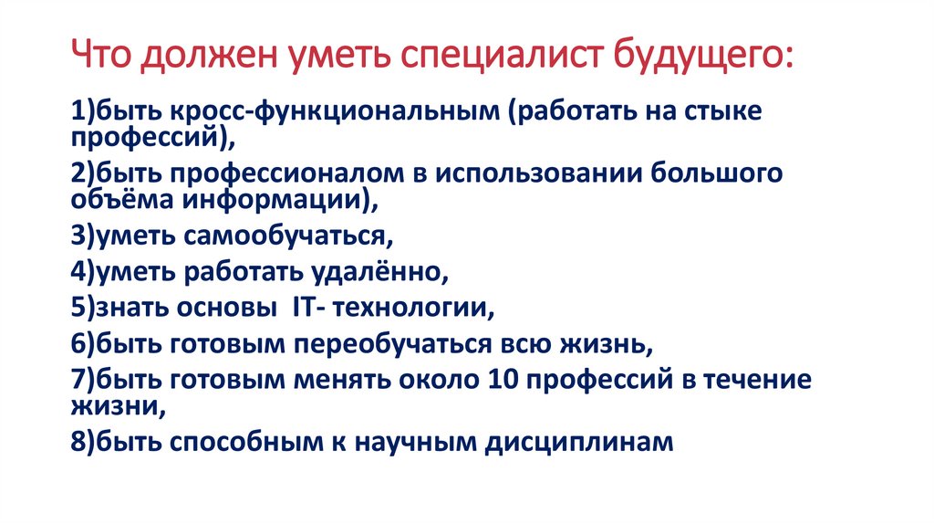 Что должен уметь специалист будущего:1)быть кросс-функциональным (работать на стыке