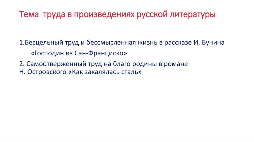 Тема труда в произведениях русской литературы1.Бесцельный труд и бессмысленная жизнь в рассказе И. Бунина