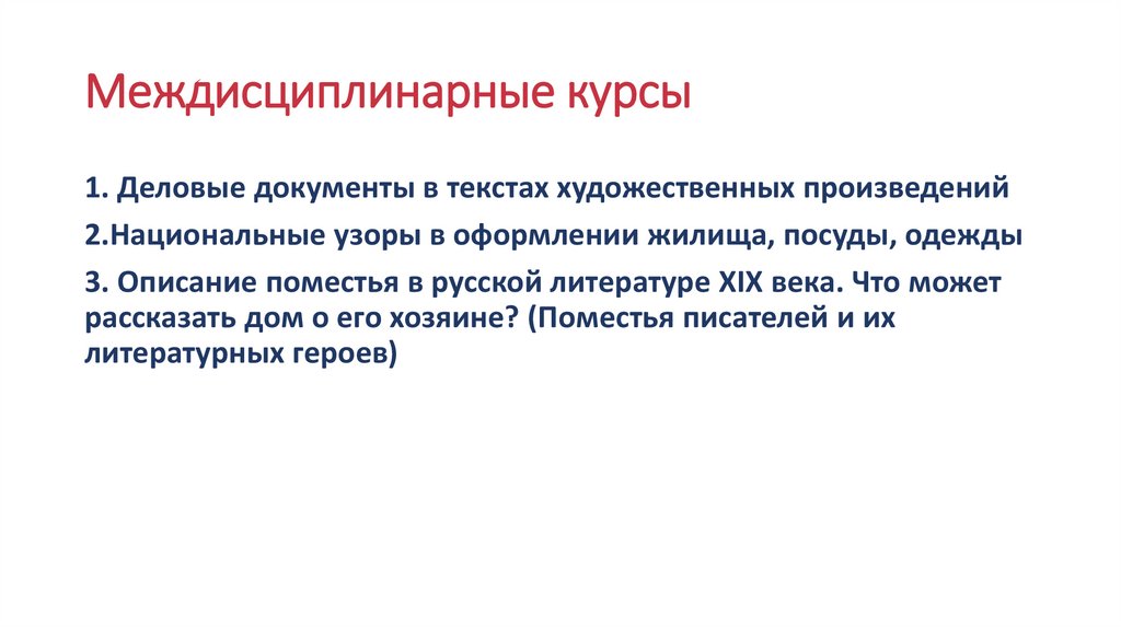 Междисциплинарные курсы1. Деловые документы в текстах художественных произведений