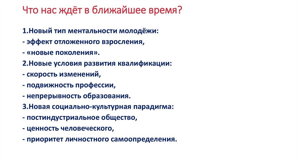 Что нас ждёт в ближайшее время?1.Новый тип ментальности молодёжи: