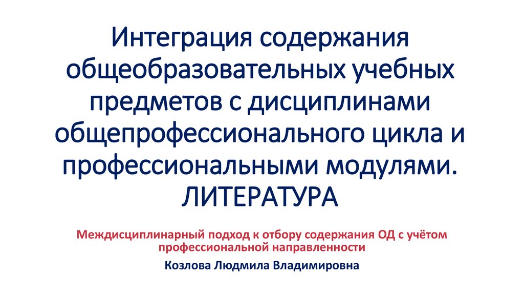 Междисциплинарный подход к отбору содержания ОД с учётом профессиональной