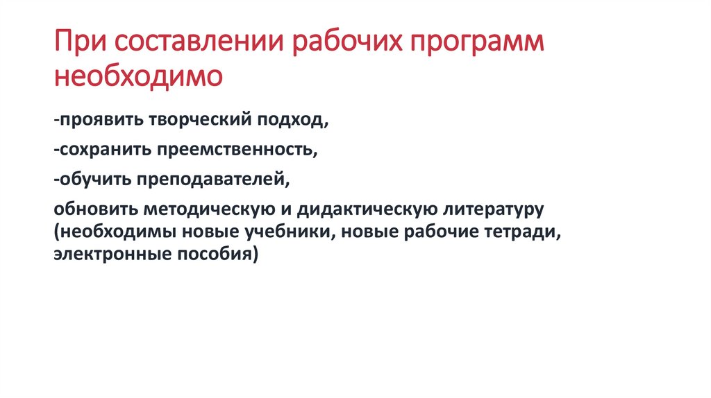 При составлении рабочих программнеобходимо