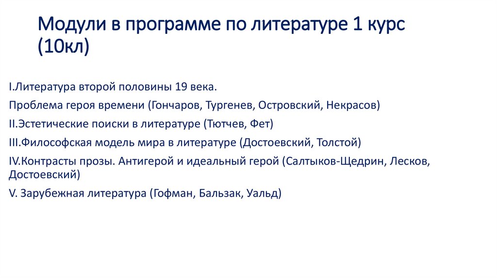 Модули в программе по литературе 1 курс(10кл)